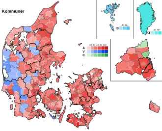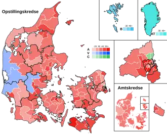General elections were held in Denmark on 23 October 1979.[1] The Social Democratic Party remained the largest in the Folketing, with 68 of the 179 seats. Voter turnout was 86% in Denmark proper, 65% in the Faroe Islands and 50% in Greenland.[2]