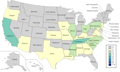 The thirty-two teams came from twenty-one states, plus Washington, D.C. California and Tennessee had the most teams with three each. Twenty-nine states did not have any teams receiving bids.[7]