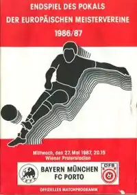 The 1987 European Cup final was a football match held at the Praterstadion, Vienna, Austria, on 27 May 1987, that saw FC Porto of Portugal defeat Bayern München of West Germany 2–1. Both sides were missing key players: the Portuguese were without their injured striker Fernando Gomes, while the Germans were missing their sweeper and captain Klaus Augenthaler, who was suspended, along with striker Roland Wohlfarth and midfielder Hans Dorfner, who were both injured.
