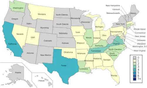 The forty-eight teams came from thirty states, plus Washington, D.C. California and Texas had the most teams with four each. Twenty states did not have any teams receiving bids.[7]