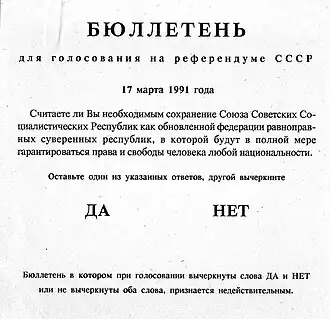 - ^ Закон СССР от 27 декабря 1990 года № 1869-1 «О всенародном голосовании (референдуме СССР)» // Ведомости СНД и ВС СССР. — 1991. — № 1. — ст. 10.