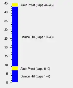 The two Williams were 1st and 2nd in qualifying with Prost on pole ahead of Hill, Schumacher, Senna, Blundell and Brundle. Prost had a poor start and was passed by Hill, Schumacher and Senna. Prost reclaimed third from Senna on the run down to the first chicane, which they entered side by side. Exiting the chicane, Senna spun and had to wait for the entire field to pass by before he could rejoin. Fourth placed Brundle then spun as well at the second chicane forcing Prost to take evasive action and bypass part of the track. Both would serve 10-second stop-and-go penalties for this later in the race. At the end of the first lap, Hill led Schumacher, Prost, Blundell, Patrese, Berger and Alesi.