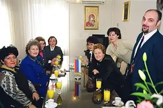 ![]() Biljana Plavšić (second from the left) at her office in Banja Luka. Plavšić moved the Presidential office from Pale to Banja Luka, a move which caused outrage among her former colleagues from the SDS | |||