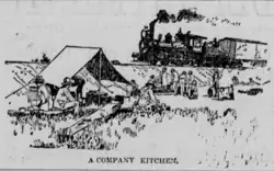 Upon the outbreak of the Spanish–American War in April 1898, two regiments of the Nebraska National Guard were sent to Lincoln, Nebraska, on April 23 to mobilize,[2] per orders by Governor of Nebraska Silas Holcomb.[3] The unit entered United States service on either May 12[2] or May 10,[4] with an enlistment period of two years or the end of the war, whichever came first.[5] After training in Nebraska at Camp Alvin Saunders,[6] the regiment was originally intended to be sent to Camp George H. Thomas in Georgia, but was instead sent to San Francisco, California,[7] leaving on May 16.[8] The trip was made by railroad and cost the government $15,808.80.[9] Colonel John P. Bratt commanded the unit, which would eventually receive the nickname "Fighting First".[3] The regiment carried the American flag and Blue regimental flag.[1]
