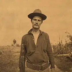 American troops performed occupation duty in the city, with the First Nebraska policing the waterfront district near the customs house.[17] Tensions remained between the Americans and the Spanish and with the Filipino rebels under General Emilio Aguinaldo, who desired independence for the Philippines.[18] Soldiers in the occupying American forces often referred to the locals by racial slurs, and some of the soldiers behaved in a hostile manner towards the Chinese minority population of Manila. Some looting occurred as well.[19] Bratt was sent home due to illness in September, and John M. Stotsenburg was promoted to colonel to command the regiment on October 4.[20] Disease caused many illnesses and deaths in the unit, and 300 soldiers were discharged in December and shipped back to the United States due to illness or infirmity. The losses to illness were partially offset by the arrival in late November of the additional recruits that had been authorized in June.[21] In December, the regiment was transferred to Camp Santa Mesa, which was in a salient of the American lines outside of Manila that would allow the regiment a route with which to quickly take the city's waterworks if needed.[20]