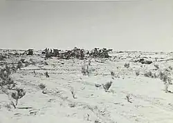 After training on 18-pounders and 4.5 howitzers, the regiment was equipped with 25-pound artillery pieces in early 1941.[4] During the 9th Division's early involvement in the fighting in North Africa, the 2/8th was used to defend Mersa Matruh – a strategically important railhead on the Egyptian coast, lying between the ports of Tobruk and Alexandria[3] – between May and September 1941, before moving to Sidi Barrani. In October 1941, they were moved to Palestine, before being sent to Syria in January 1942 to join the Allied garrison that had been established their following the defeat of the Vichy French forces there during the Syria–Lebanon Campaign. They remained there, establishing a position around Jdaidet on the Syria–Lebanon border to defend against a possible German invasion,[3] until July 1942 when the 9th Division was hurriedly transferred to El Alamein, after the fall of Tobruk.[4] By this time the regiment was commanded by Lieutenant Colonel Walter Tinsley.[7] The regiment subsequently took part in both the First and Second Battles of El Alamein between July and November, firing over 163,000 shells, mainly in support of the 26th Brigade.[4]