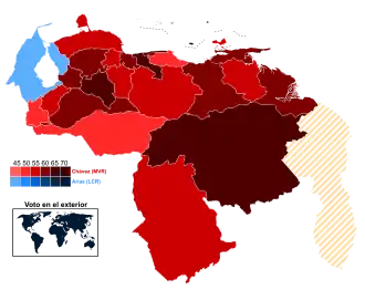 General elections were held in Venezuela on 30 July 2000, the first under the country's newly adopted 1999 constitution. Incumbent President Hugo Chávez ran for election for a full six-year term under the new constitution. He was challenged by another leftist and former ally, Zulia Governor Francisco Arias Cárdenas. Chávez won the election with almost 60% of the popular vote, increasing his vote share over the previous elections and managing to carry a larger number of states. Arias Cárdenas only managed to narrowly carry his home state of Zulia.