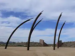 Canberra artist Tim Wetherell was commissioned by ANU[25] to produce a sculpture from the ruins of the Mount Stromlo telescopes. The finished sculpture was named "The Astronomer" and installed in the Parliamentary Triangle outside Questacon. It represents the concept of stellar parallax.