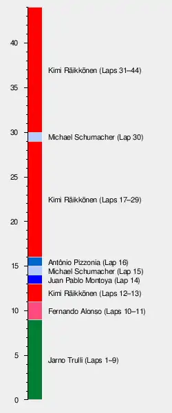 The race was contested over 44 laps and was won by Kimi Räikkönen, taking his and McLaren's only race win of the season from tenth place on the grid. Second place went to Michael Schumacher, who won his seventh and final world championship, after beating third-placed Rubens Barrichello.