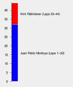 The 44-lap race was won by Finnish driver Kimi Räikkönen, driving a McLaren-Mercedes, after he started from second position. Räikkönen's Colombian teammate, Juan Pablo Montoya, took pole position and led until his second pit stop on lap 33; he then maintained second place until a late collision with Brazilian driver Antônio Pizzonia in the Williams-BMW. Spaniard Fernando Alonso thus took second in his Renault, with Englishman Jenson Button third in a BAR-Honda.
