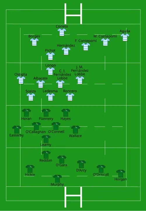 • This was the second time that Argentina had eliminated Ireland from a Rugby World Cup, having also done so in the 1999 Rugby World Cup quarter-final play-off.