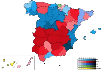 | Spanish Socialist Workers' Party and allies (PSOE–PSC–ExC) | 7,760,865 | 34.92 | +0.02 | 24,029 | +772 | |
