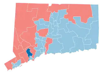 Results of the 2008 Connecticut Senate election.[2] Party shading denotes winner of Senate seat.