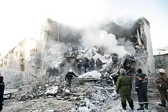 The Kazan gas explosion occurred on January 9, 2008, destroying an entire corner of a three-story khrushchyovka-style apartment building on Malaya Pechyorskaya Street in the Aviastroitelny District of Kazan, Tatarstan, Russia. The explosion took place at 0:28 a.m. local time (UTC +3).