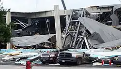 The explosion damaged 100,000 square feet (9,300 m2) of the facility, concentrated in the southern part of the plant where packing operations were conducted, and triggered a leak from the plant's refrigeration system, causing the release of about 18,000 pounds (8,200 kg) of ammonia.[4][2] Emergency responders calculated the ammonia levels at 20 parts per million outside the plant.[2] It also set small fires around the facility grounds.[7] Over 200 workers were inside the plant at the time of the explosion.[6] One member of ConAgra's safety team ran back into the plant to rescue a co-worker and was killed by falling debris.[8]