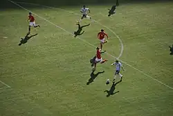Argentina took the lead when Lionel Messi's free kick from the left was turned into the Korean goal by Korean player Park Chu-young.[8] A free kick was awarded on the left, and Messi's cross was headed in by Gonzalo Higuaín. In first half injury time, Korea cut the deficit when Lee Chung-yong tackled Martín Demichelis to score.[8] Two goals from Argentina in the second half sealed a 4–1 win. Messi's shot was first saved by goalkeeper Jung Sung-ryong; his second shot hit the post before Higuaín shot the ball into an unguarded net.[9] Higuaín completed his hat-trick by heading in a cross from substitute Sergio Agüero.[9]