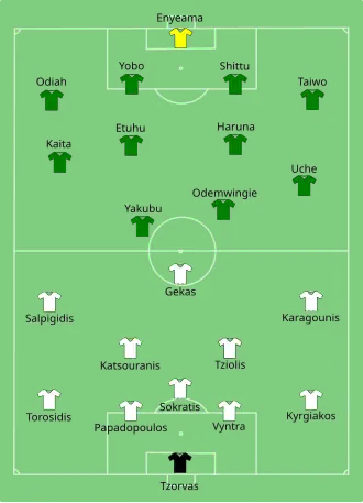 - ^ a b "Tactical Line-up – Group B – Greece-Nigeria" (PDF). FIFA.com. Fédération Internationale de Football Association. 17 June 2010. Archived from the original (PDF) on 4 July 2012. Retrieved 17 June 2010.