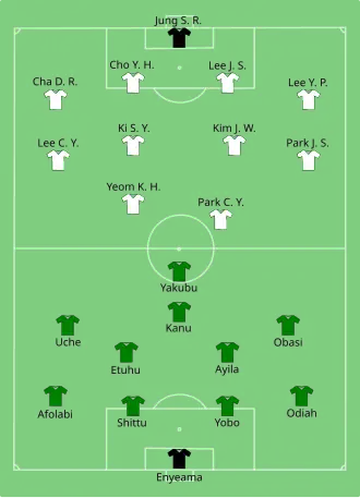 - ^ a b "Tactical Line-up – Group B – Nigeria-Korea Republic" (PDF). FIFA.com. Fédération Internationale de Football Association. 22 June 2010. Archived from the original (PDF) on 2 July 2010. Retrieved 22 June 2010.