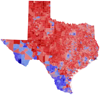 ![]() Perry: 40–50% 50–60% 60–70% 70–80% 80–90% >90% White: 40–50% 50–60% 60–70% 70–80% 80–90% >90% Other: Tie No Votes | |||||||||||||||||