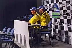 ![]() Mikko Hirvonen joking with his co-driver Jarmo Lehtinen before the start of the rally. | |||