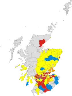 Talks took place to decide who would control of the 23 remaining councils [4] This resulted in Labour taking control of Fife, East and West Lothian, Inverclyde and South Lanarkshire and forming a grand coalition with the SNP in the City of Edinburgh and an anti-Conservative alliance in East Renfrewshire.