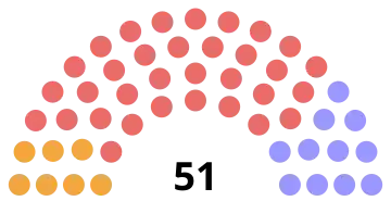 | Total seats: | 20 | 8 | 6 | 6 | 6 | 5 | 51 | ||