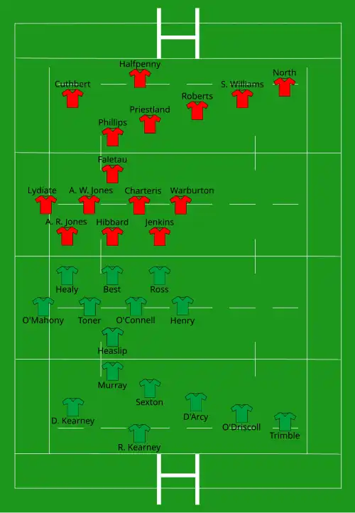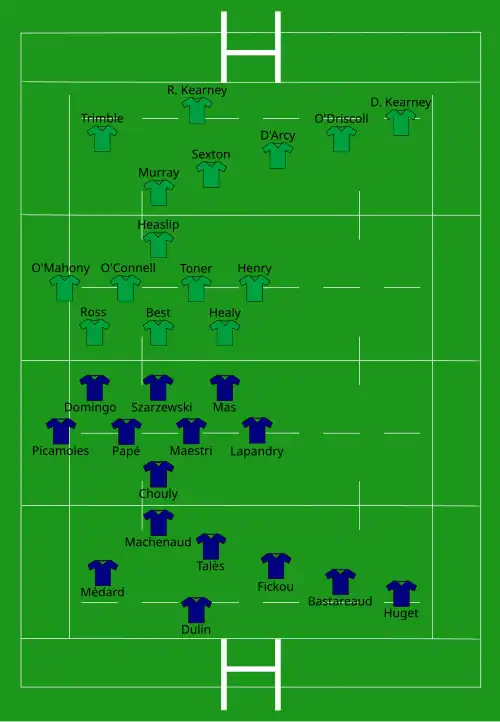 - Paul O'Connell was named at lock for this match, but was ruled out with a chest infection hours before kick-off. He was replaced by Dan Tuohy.[24]