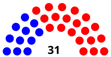 Following the 2014 State Senate elections, the Republicans maintained effective control of the Senate with twenty members to the Democrats' eleven.