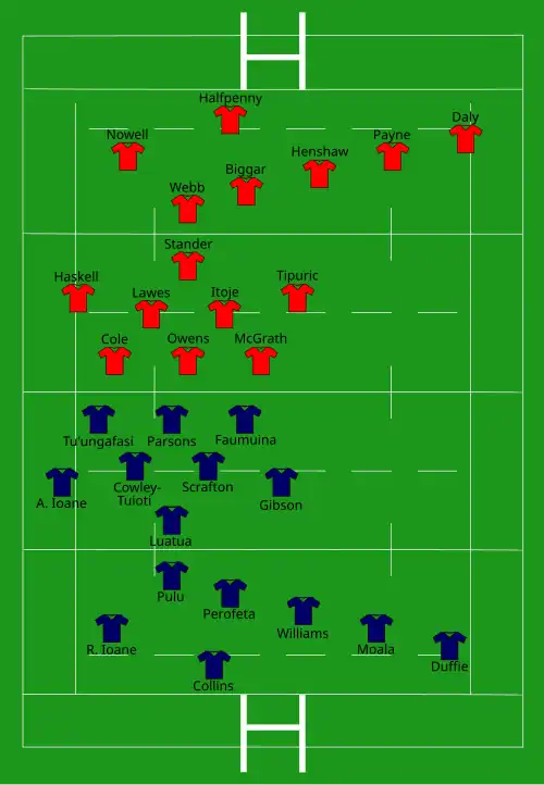 | Ben Te'o | 3 | 0 | 0 | 0 | 0 | 0 | 2 | 0 | 0 | 0 | 0 | 0 | 5 | 0 | 0 | 0 | 0 | 0 | – |