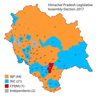 - ^ The Hindu Net Desk (18 December 2017). "Himachal Pradesh Assembly election results — counting ends as BJP seals majority with 44 seats" – via www.thehindu.com.