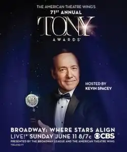 The 71st Annual Tony Awards were held on June 11, 2017, to recognize achievement in Broadway productions during the 2016–17 season. The ceremony was held at Radio City Music Hall in New York City, and was broadcast live by CBS.[2] Kevin Spacey served as host.[3]