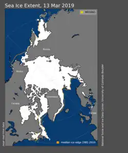 - ^ "March | 2019 | Arctic Sea Ice News and Analysis". Archived from the original on 25 April 2020. Retrieved 11 May 2020.
