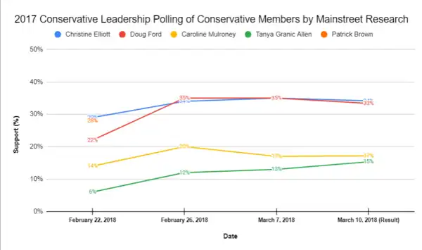- ^ Blackwell, Tom (February 25, 2018). "Brown campaign claims its internal polling shows he's gaining support in the Ontario PC leadership race". National Post. Retrieved February 26, 2018.