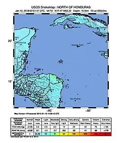 - ^ "Magnitude 7.6 quake hits in Caribbean north of Honduras". Associated Press. 9 January 2018. Retrieved 9 January 2018.