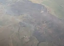 Starting on 24 June 2018 and continuing throughout the summer, a record-breaking series of wildfires burned across the United Kingdom. The two largest fires, which were declared major incidents, burned over 7 square miles (4,480 acres; 18 km2) each and broke out on Saddleworth Moor in Greater Manchester and Winter Hill in Lancashire.[2][3] Other large fires broke out in Glenshane Pass in County Londonderry, Northern Ireland (640 acres), Epping Forest, in London and in the Vale of Rheidol in Ceredigion, Wales. The Saddleworth Moor fire has been described as the largest English wildfire in living memory.[4] Most of the wildfires occurred during the first official heatwave in the United Kingdom since June 2017, with temperatures reaching above 30 °C (86 °F) for several days, making the hottest June in the country since 1995,[5] and the driest June for over ten years in large parts of the United Kingdom, exacerbating the crisis.[5] A wildfire started on the Staffordshire Moorlands on 9 August and, despite rain, had spread to cover 219 acres by 11 August.[6] Some hot spots were still burning as at 22 August.[7] In total, there were 79 fires over the course of the year, a new record. However, the record was beaten in 2019 with 96 fires as of April 23.[8]