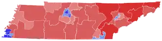 ![]() ![]() Blackburn: 40–50% 50–60% 60–70% 70–80% 80–90% >90% Bredesen: 40–50% 50–60% 60–70% 70–80% 80–90% >90% Tie: 50% No data | |||||||||||||||||