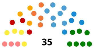 In July 2015 the regional government, which had been led by UV's Augusto Rollandin since 2008 (he had been President also in 1984–1990 and senator for Aosta Valley in 2001–2006), was enlarged to the centre-left Democratic Party (PD).[3] In June 2016, after months of negotiations, the government was joined also by the Progressive Valdostan Union (UVP).[4][5]