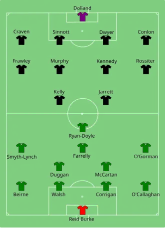 Seven minutes into the second half, Eleanor Ryan-Doyle brought the score back to 2–2 with another long range-goal from outside the penalty area. Wexford captain Kylie Murphy scored what proved to be the winning goal on 64 minutes, when she was assisted by Rianna Jarrett and curled a composed shot past Reid Burke from 12 yards (11m).[10][11]