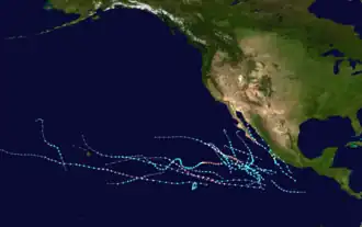 - ^ An average Pacific hurricane season, as defined by the National Oceanic and Atmospheric Administration, has fifteen tropical storms, seven hurricanes and three major hurricanes.[1]