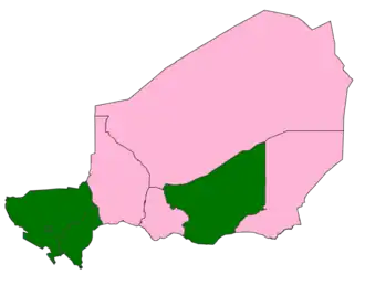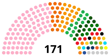 The 171 members of the National Assembly are elected by two methods. 158 members are elected from eight multi-member constituencies based on the seven regions and Niamey using party-list proportional representation. Another eight seats are reserved for minority groups and are elected from single-member constituencies using first-past-the-post voting. Normally, five seats (one for each permanently inhabited continent) are reserved for Nigeriens living abroad, all elected from single-member constituencies using first-past-the-post voting.[8] However, in the months preceding the election, the registered voters list for Nigeriens living abroad was not kept up to date, resulting in the elections for these five seats not being held. This de facto lowered the total number of seats in the chamber to 166 and the number needed for a majority to 84.[9]