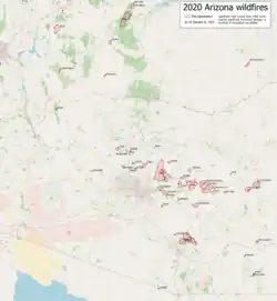 ![]() Map of fires during the 2020 Arizona wildfire season | |