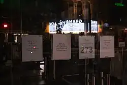 Several business walls and sidewalks were painted with graffiti that workers removed and business were left paying for the clean up.[64][100] Some demonstrators left threatening graffiti messages on buildings, such as "Kill cops".[101] Several businesses reported less foot traffic in stores and some retail locations remained closed during the June 2021 unrest, such as the Seven Points shopping center.[99] Business partnerships sought ways to revitalize and promote economic resiliency during the unrest.[98] Uptown residents organized graffiti removal and trash pickup the mornings after unrest[102] and others formed social media groups that tracked local vandalism and crimes to obtain attention of Minneapolis city councilors.[86] In mid June, the owner of the Juut Salonspa beauty salon that had been in the area since 1986 announced the permanent closure of their store due to unrest, crime, and street closures that affected business activity.[103] In October, retailer John Fluevog Shoes permanently closed its store location on Hennepin Avenue and cited both the riots and COVID-19 pandemic as the reasons for its financial decision.[104]