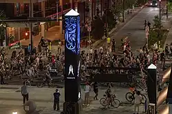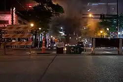 Demonstrators made several attempts to hold space for Winston Smith and Deona Knajdek during the course of events by blocking the area of West Lake Street and Girard Avenue, a busy intersection, to vehicular traffic.[94] Some demonstrators said to media reporters they were attempting an occupied protest or "no-go" zone[95] similar to George Floyd Square at the intersection of 38th and Chicago, a protester-held area in the city's Powderhorn Park community that had been a gathering place for social justice protests and was adorned with public art and memorials.[62][63][54]
