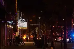 The peaceful protests and destructive unrest had an impact on the three-block stretch of West Lake Street in Minneapolis near were Smith and Knajdek were killed.[19] Prior to the 2021 unrest, the Uptown economy faced hardships from several business closures, the COVID-19 pandemic, and the George Floyd protests in Minneapolis–Saint Paul.[19][96] Over several days of rioting after Floyd's murder in May 2020, 334 business were damaged a long a six-stretch block of Lake Street, and by a year later 110 of the businesses remained closed.[97] In early June 2021, the historic Uptown Theatre had closed.[98] The Twin Cities Business Magazine remarked on June 15, 2021, that "Uptown businesses are on rocky ground" following the accumulated impacts of events and unrest.[99]