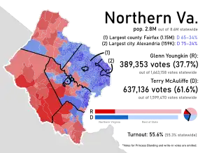 - ^ Vozzella, Laura; Olivo, Antonio; Santamariña, Daniela; Tan, Shelly; Mellnik, Ted (August 7, 2021). "Between the GOP and the governor's mansion: A bigger, bluer Northern Virginia". The Washington Post. Retrieved April 26, 2022.