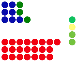 The 2017 state election saw Labor win one of the most comprehensive victories on record at the state or territory level in Australia. Labor won 41 of the 59 seats in the Legislative Assembly—a 23-seat majority—both WA Labor's strongest result ever, and the largest government seat tally and largest government majority in Western Australian parliamentary history. Additionally, Labor exceeded all published opinion polling, winning 55.5 percent of the two-party-preferred vote from a state record landslide 12.8 percent two-party swing.[11][12] The Liberals were hit by a 15.8% swing against them on the primary vote and lost 18 seats to Labor, finishing with just 13 seats, the lowest share of seats the party has won in any election. The Nationals won the remaining five seats.[13] Labor also became the largest party in the Legislative Council with 14 of the 36 seats, ensuring it required at least five additional votes from non-government members to pass legislation.[13][14]