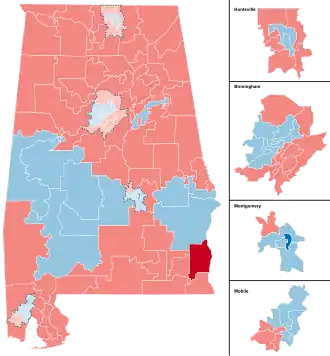The 2022 Alabama House of Representatives elections were held on November 8, 2022. The Republican and Democratic primaries were held on May 24, 2022, and any races in which no candidate exceeded one-half plus one of the total votes advanced to a runoff on June 21, 2022. This was the first election cycle since 2002 in which the Libertarian Party of Alabama was on the ballot, as they exceeded the threshold for petition signatures needed to gain ballot access in Alabama.[1] Libertarian candidates were nominated by party convention. All 105 of Alabama's state representatives were up for reelection. In Alabama, members of both the House of Representatives and the Senate serve four-year terms, running in years corresponding with presidential midterm elections.