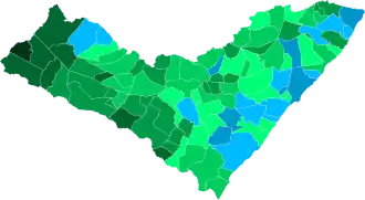 ![]() Candidate with the most votes per municipality in the 2nd round (102): Paulo Dantas: 50%–59% (21) Paulo Dantas: 60%–69% (26) Paulo Dantas: 70%–79% (26) Paulo Dantas: 80%–89% (8) Paulo Dantas: 90%–100% (Pariconha) Rodrigo Cunha: 50%–59% (13) Rodrigo Cunha: 60%–69% (7) | ||||||||||||||||||||||