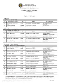 - ^ a b Amboy, Rodelyn (October 9, 2021). "WALONG ARAW NA PAGHAIN NG COC NG MGA KANDIDATO PARA SA HALALAN, MAAYOS NA NAISAGAWA SA PROBINSYA NG BATANES". Facebook. Retrieved May 25, 2022.