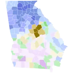 Raffensperger performed best in the Atlanta metropolitan area, while Hice performed best in Georgia's 10th congressional district, where he served as a U.S. representative; only five counties outside the district were won by Hice. The only county to not be won by either Raffensperger or Hice is Treutlen County, Hudson's home county, which he won with 76.42% of the vote.[24]